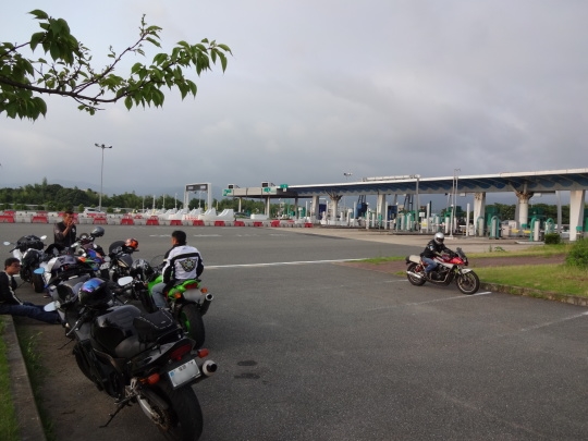| 東組、福岡ICに到着です。18:10。 本日の定例ツーも、 途中雨に降られたツーリングとまりましたが、 トラブルなく完遂できた、楽しいツーでした。 また、次回も・・・多数の参加を お待ちしております・・・ヨロシコ(^^)v。 反省会は、19:30より 手羽屋 で開催しました。 ツーリング日誌のトップへ |