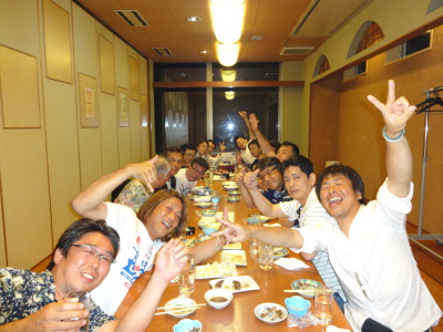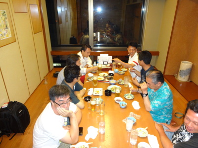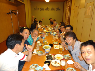 | さてさて・・・反省会の一コマです。 今回は博多駅近辺にて、 東組、西組、南組、合同です。 |