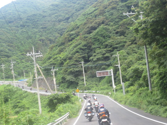 | そして、サンセットロードを快走。 途中、土砂崩れの危険有で、通行止め、 極幅小の迂回路を走行し、 |