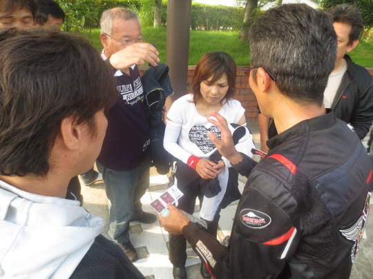 | そして、名刺の即売会・・・、 じゃなかった。 本日のゲストお二人は、 はれてメンバーインという事で、 メンバー登録の連絡先をお渡ししている所です。 そして、各自、各ブロックで帰路に就きました。 |