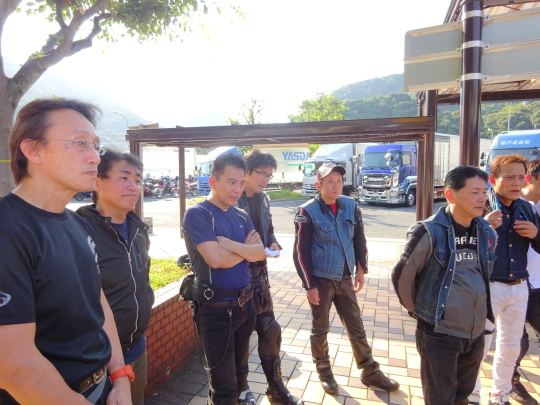 | そんなこんなで集合待ちをしていると、 Gutsさんが慌てて参上・・・、 Kenさんが秋芳洞内でバイクの鍵を落として 捜索中との事・・・、えー、なんで〜、 と、皆さん、驚き桃の木山椒の木ーです。 スペアキーを福岡に取りに行くか・・・ このままバイクを放置し明日取りに行くか・・・ などなど、対応策を検討していた処、 鍵が見つかったー、と連絡がありました。 拾った方が、インフォメーションセンターに 届けて頂いたみたいです。 |