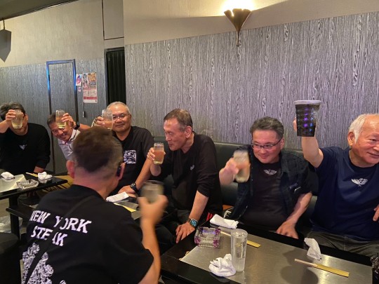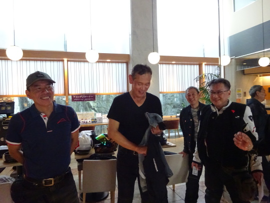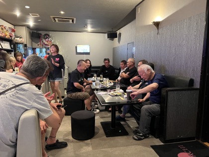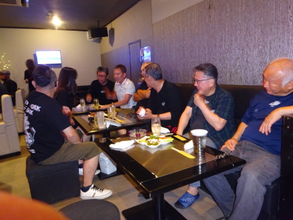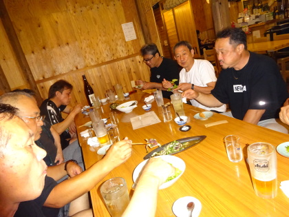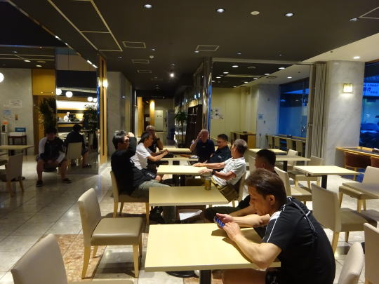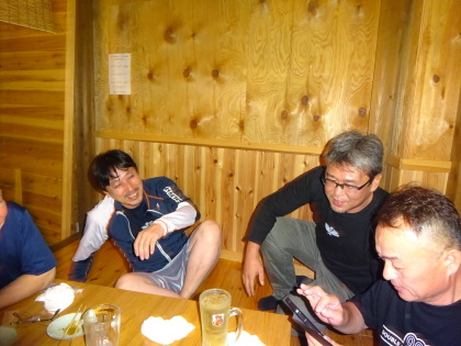 | 本日の出来事・・・などなど、 楽しい雑談・反省会です。 それにしても、 早朝から走行して・・・みなさん元気ですね。 |