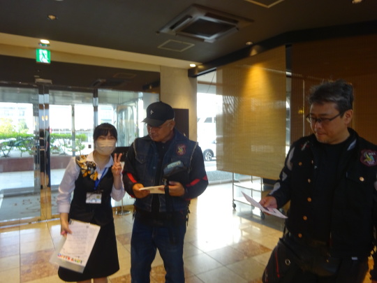 | まとめて、ホテルの案内。 入浴のPW、朝食の時間・・・ とうとう説明頂きました。16:25。 そして、各自部屋に入り、 16:40までにビール持参で 302号室に集合します。 |