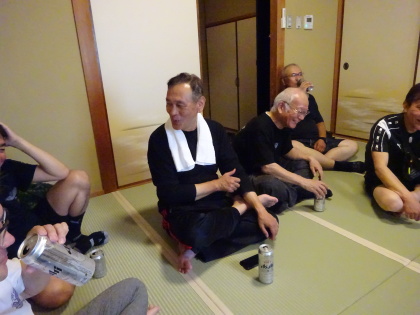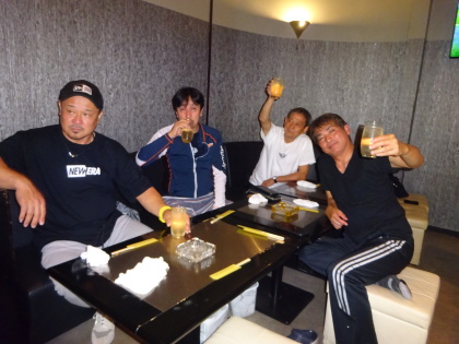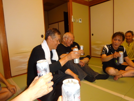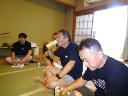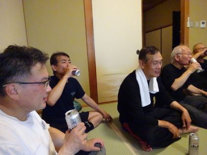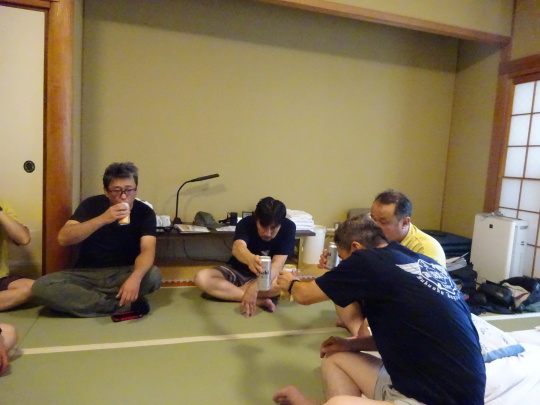 | 和室の302号室。 恒例の無事ホテル到着の乾杯です。 |