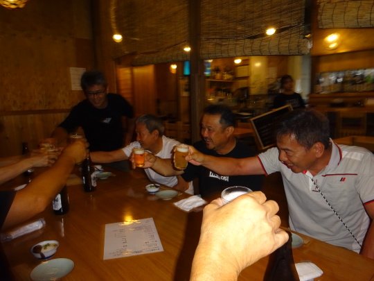 302号室の乾杯会を終え 各自、入浴、着替え、明日の準備・・・等々、 18:15ロビー集合で夕食の居酒屋へ向かいます。 |