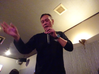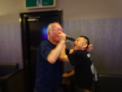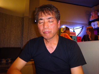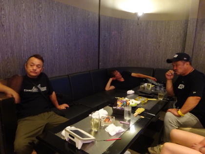 90分、飲んで歌って、 ・・・はっちゃけました〜。 一番道路側のMarbouさん、 首が曲がって、キョンシーorゾンビ状態、 寝こけてますね〜、 だって、2時起きだもん・・・。 |
