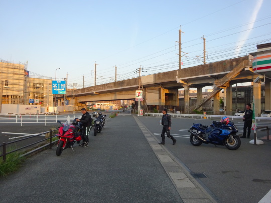 | 本日は、GW恒例の男気ツーリングです。 本日のコースは、 楽山オートバイ神社・お好み焼きツー、 全走行、約610kmのロングコースです。 コース詳細はこちら⇒240504.pdf プランナーはMarbouさん。 いつものセブン・・・、5:45頃。 |