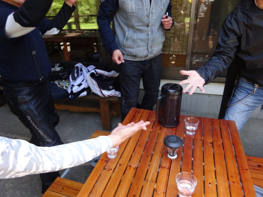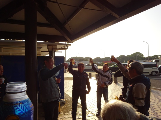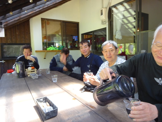 Kenさんの男気を頂きながら 朝礼の様な雑談会・・・。 そう言えば「ご安全に〜」も しなかった・・・。 |