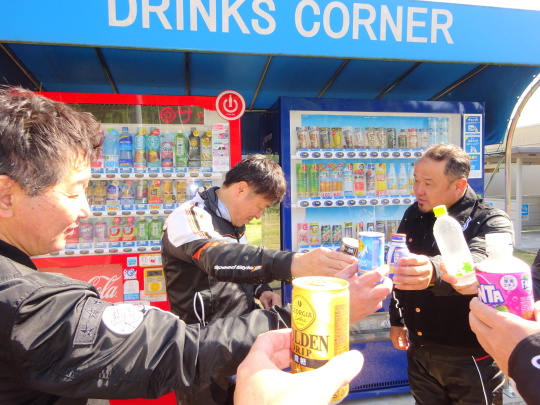 | 勝者、Kenさん、男気決定です。 〜男気じゃんけん、 ジャンケンで勝った勇者が 負けた全員分のジュースを奢る・・・、 という男気ルールです。〜 |