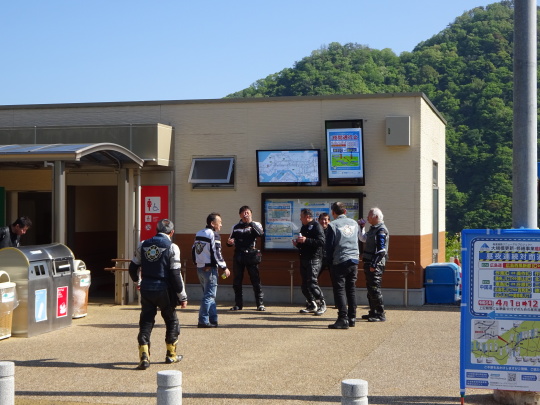 | 11:45昼食を終え、出発。 戸河内IC手前で給油し セブンにて再集合。写真は有りませんが、 道の駅前のせいか駐車場も大混雑 露天店舗も昼時で大混雑、 早々に出発し、R186を走行し 吉和ICより中国道に入り帰福です、 鹿野SAで休憩タイム。 |