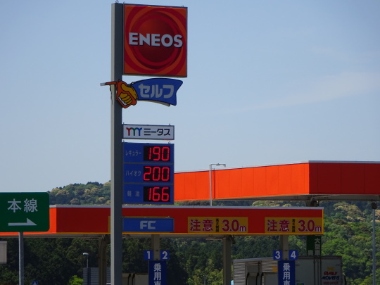 | 美東SAにて給油休憩 こちらは、ハイオク¥200/1L |