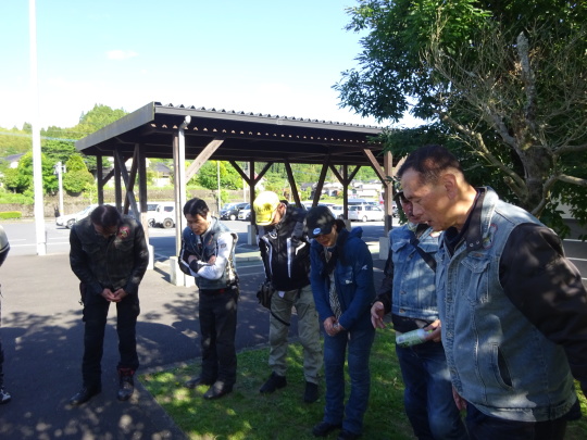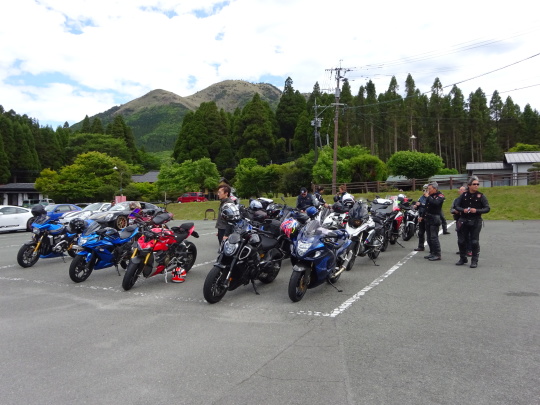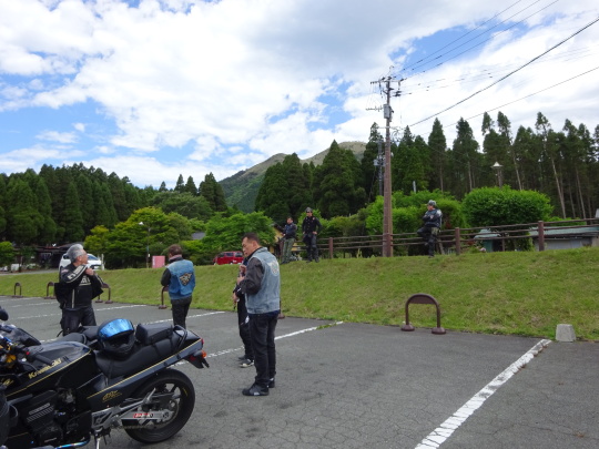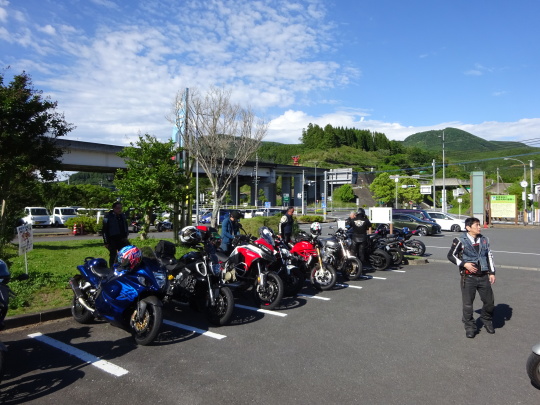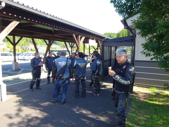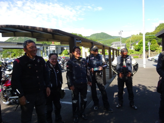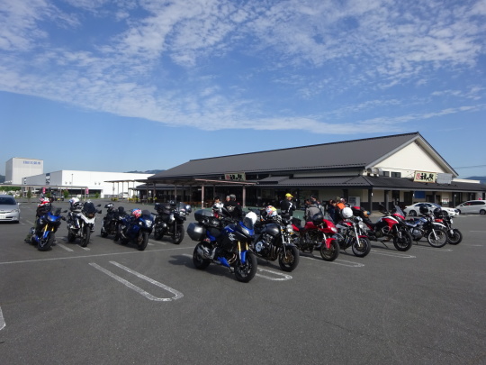| 白紙鉱泉を出発し、 またまたワインディングの連続で 道の駅 童話の里くすに到着です。 必要に応じて給油して再集合です。 |