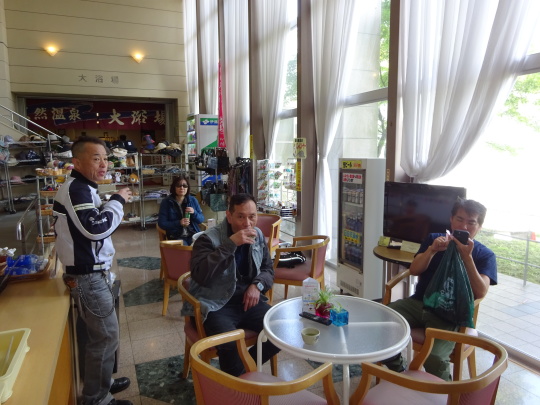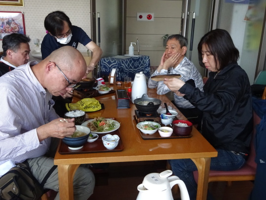 | ゆっくりと温泉に入り、 外に出ると、 既にすごう班が合流済みでした。 すごう丸福で、 美味しい定食を頂いたとの事です。 |