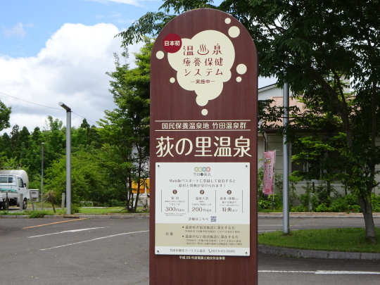 | 定刻までに遅れてる車両が無事に到着。 トイレ等を済ませ、プチ休憩。 ここで、温泉入浴の有無を確認。 10人温泉入浴(荻の里温泉で昼食) 10人未入浴(道の駅すごう内で昼食) の二班に分かれ、 定刻10:30、出発します。 |