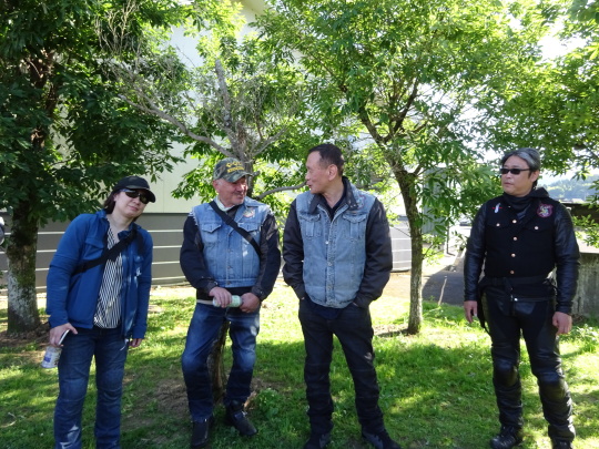 | 日陰で、 バイク談議&ソフトクリンタイム ここで、インナーJを着込みます 帰りの高速で風にさらされ 過ぎないように・・・と思って・・・。 |