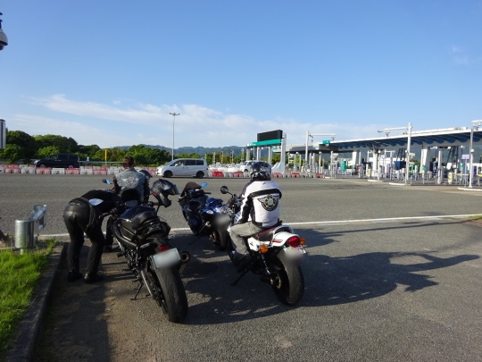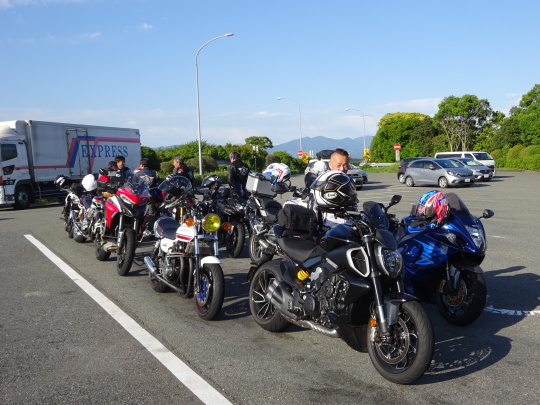 | メッシュの方・・・革ジャンの方・・・、 私、Yuiはメッシュジャケットをチョイス もちろん今はインナーJを着用してます。 さて、吉と出るか凶と出るか・・・。 いつものセブン集合中。 ここセブンで5台集合予定。 定刻過ぎ7:35、基山PAに向け出発。 |
