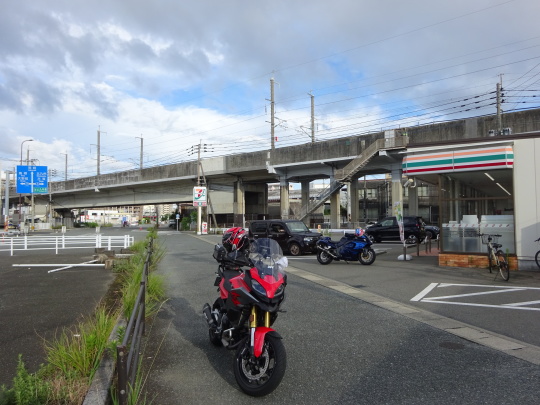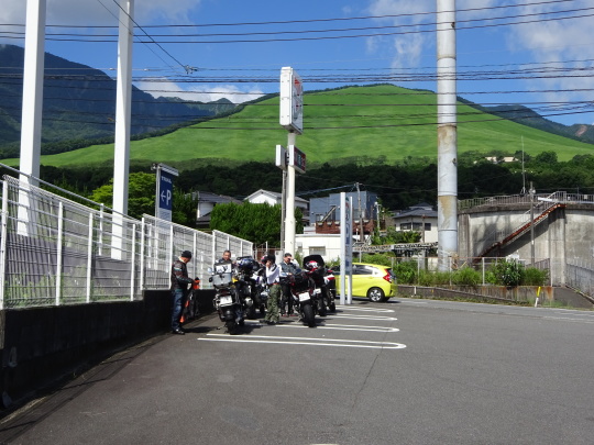 | 鶴見岳を下り、 別府ICを過ぎた所で給油タイム そして、 セブン別府竹の内店で再集合します。 この撮影場所、日陰なんです。 コンビニに日陰なんて・・・ 有難い限りです。 |