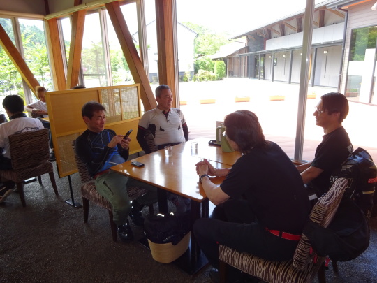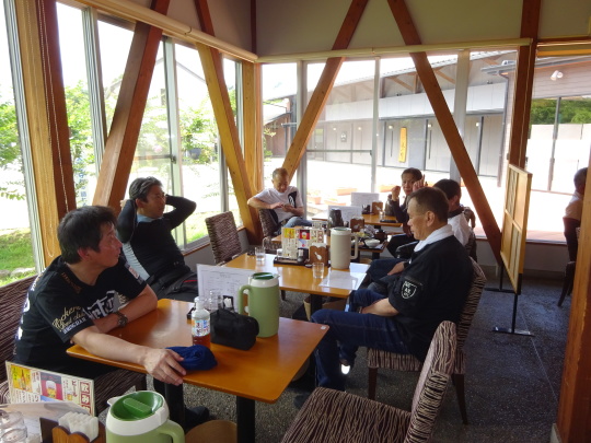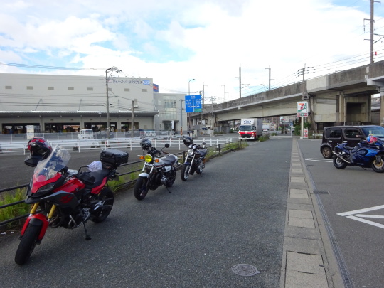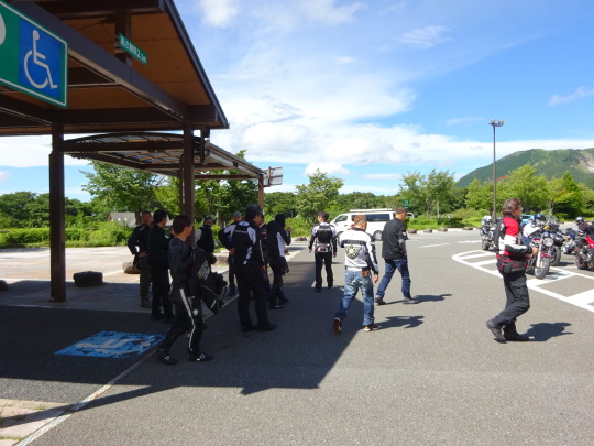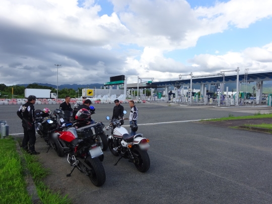 | オレンジロードの渋走で少々疲れた との声が聞こえてきました。 協議の結果、下道はキャンセルし、 このまま高速で帰福しましょう、 という事になりました。 猛暑日という事もあり良い判断ですね、 という事で、早々に撤収。 |