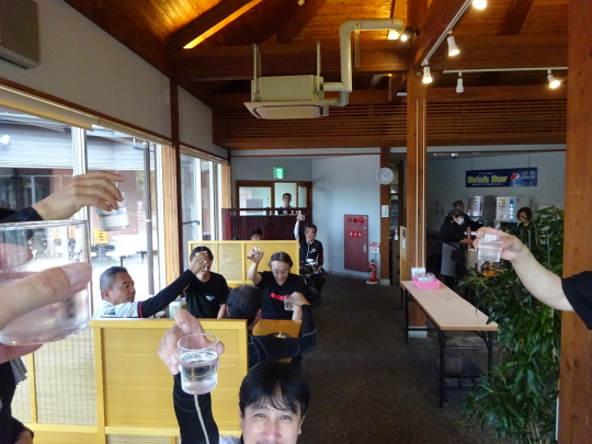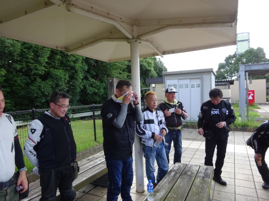 | 1台帰路の関係で途中離脱。 井上PAで最後の休憩、水分補給。 そして、 ここで、解散式とします。 |
