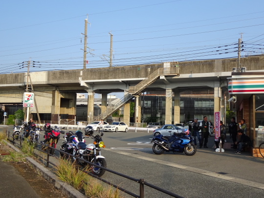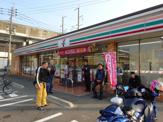 | いつものセブン、7:25 ゾクゾク集合中です。 ここで8台の集合予定。 |