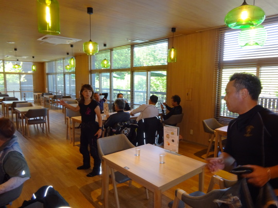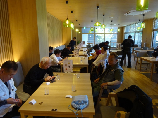| 温泉から上がると、 未入浴組の皆さんが まーだ食べてました・・・。 デザートタイム?。 |