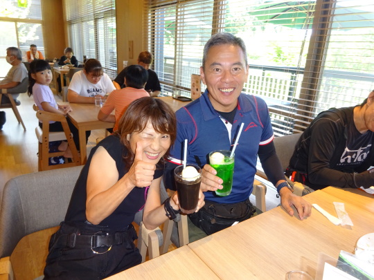| 日陰にいると尚更心地良いです。 ソフトクリンののぼり旗が見えますが ここは、我慢・・・、この後、 道の駅 鹿島でのソフトクリンタイム が控えてますので・・・。 |