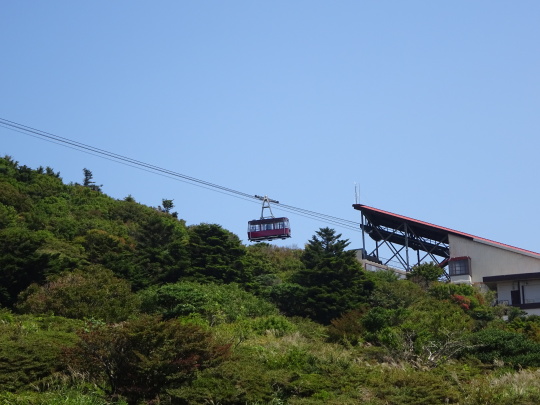 | ロープウェイ、稼働してます。 ここは、別世界の避暑地ですね 風が心地よい・・・、 多分、気温は25〜26℃位かな。 |