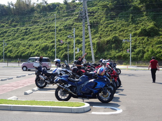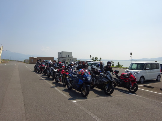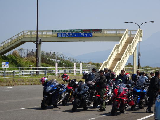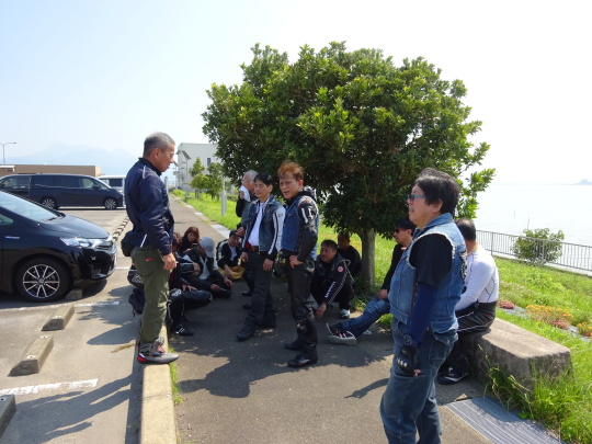 | 千々石観光センター、 にて再集合です。 途中合流の2台も ここで合流完了。 20台でのツーリングです。 |