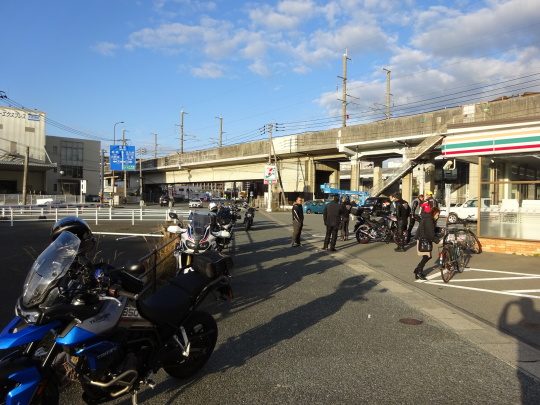 | いつものセブン、 定刻8:30を超えましたが 1台未集合の様です、 ガレージを出てGSに向かった との情報がありましたので 本隊は出発しましょう・・・ という事で、 |