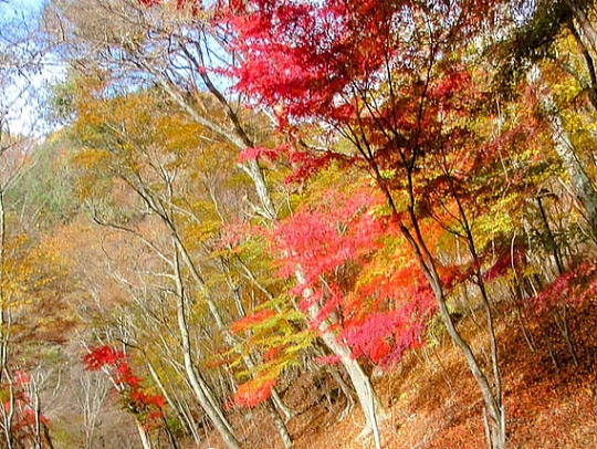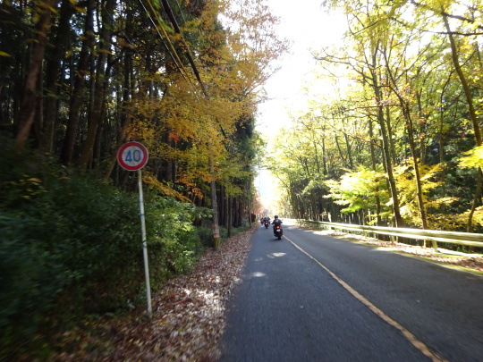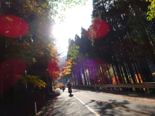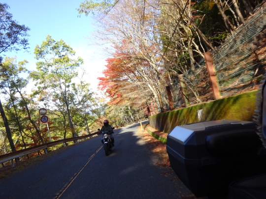 | 英彦山の紅葉を満喫、 別所駐車場を左折し 枯葉、落葉、杉の皮、満載の 下り道路をビビりながら走行し、 |