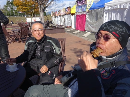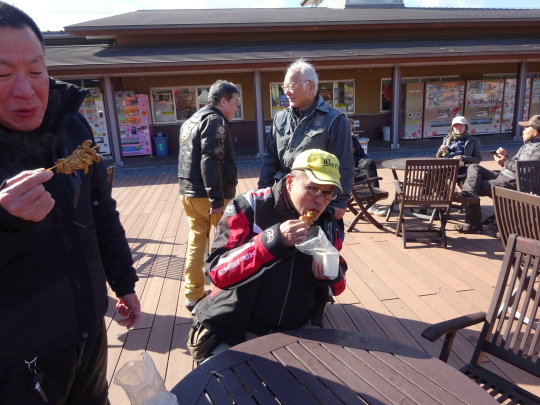 | 美味い、美味い・・・と かぶりつく皆さん・・・。 日差しが温かく 日向ぼっこ状態です。 |