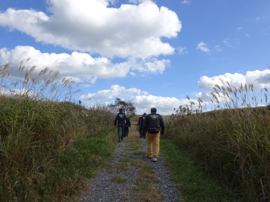 | 8:35、 Marbouさん先導で出発 今回のコース企画立案は Maebouさんです。 Uターン??、 安心して下さい・・・、 先週コース下見済みですから・・・ |