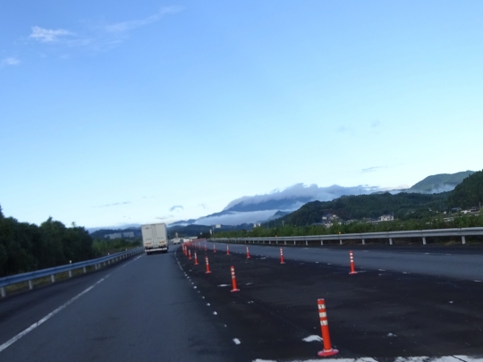 | 7:40延岡アーバンホテル を出発し、佐伯を目指します。 延岡ICに向けて走行中、 雲海みたいなのが見えたので 思わず写真をパチリ。 |